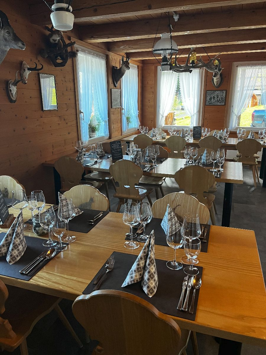 Von rustikal bis festlich gedeckt – die Gaststube bietet Platz für rund 60 Personen und ist das Herzstück der Alpwirtschaft Unterlauelen.